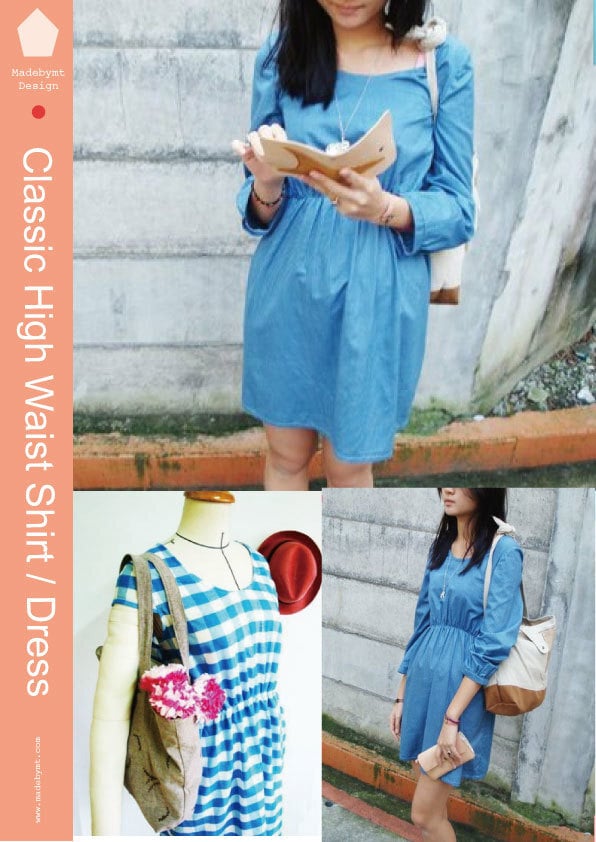 Elegant classic, Japanese style high waist Dress / Shirt digital sewing pattern – PDF